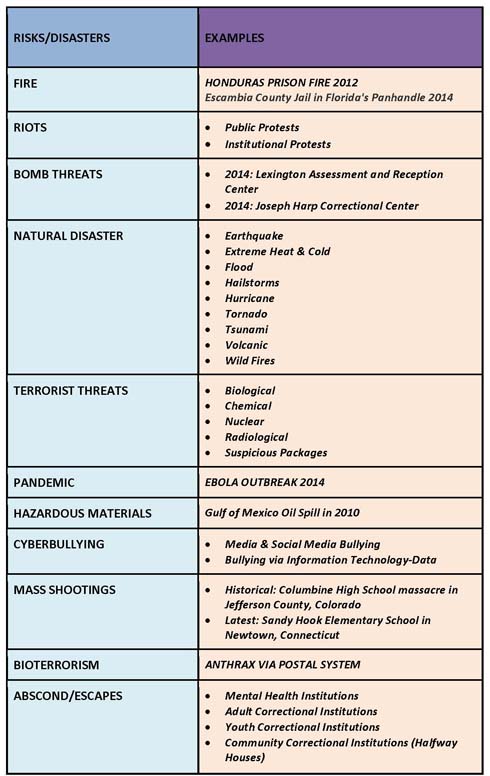 Building occupants of institutions, i.e., correctional facilities, schools, hospitals, halfway houses, and group homes, face the same amount of risks/disasters as we do in our own private living spaces. What types of risks/disasters do we face? The following risks/disasters are nationally and globally recognized: ![]() When building occupants, attorneys, or media discover a shortfall or gap in your life safety management, their biggest question is, “What are you going to do about it?” How do I know? Well, let’s look at some of the published works from the media and some activist organizations to see how they capture the safety of correctional institutions: ACLU Report Details Horrors Suffered by Orleans Parish Prisoners in Wake of Hurricane Katrina "The prisoners inside the Orleans Parish Prison suffered some of the worst horrors of Hurricane Katrina," said Eric Balaban, a staff attorney for the National Prison Project. "Because society views prisoners as second-class citizens, their stories have largely gone unnoticed and therefore untold." American Civil Liberties Union [SIC]: II. PREPARING FOR THE STORM “We’re going to keep our prisoners where they belong.” When the Mayor began to field questions, he was asked about the decision notto evacuate the prisoners in OPP. Mayor Nagin referred the question to Sheriff Gusman, who responded: “[W]e have backup generators to accommodate any power loss. . . .We’re fully staffed. We’re under our emergency operations plan. . . . [W]e’ve been working with the police department—so we’re going to keep our prisoners where they belong.”12 CNN WORLD-More than 300 killed in Honduras prison fire "Everyone ran for their lives," said one survivor who spoke briefly to local television cameras. The U.S. State Department published a report last April painting a damning portrait of conditions in Honduras' 24 prisons. CBS NEWS-Deaths, injuries in apparent gas explosion at Florida jail "The explosion shook us so hard it was like we were in an earthquake," Monique Barnes, an inmate who said she was knocked off her fourth-floor bunk, told The Associated Press by phone. "It was like a movie, a horrible, horrible movie." CNN Justice-'Complete destruction': 2 die, dozens hurt as explosion shatters Florida jail "We don't know if they're dead or alive. It's really frustrating," Eva Stewart told the station. "I can't sleep not knowing if my child's OK. I got other family members in there, too. I don't know if they're OK." I recall these statements often, “Our jails were built to withstand anything because they are made of steel and concrete.” As stated in previous articles, we are in a cultural shift and technology is the driver. The next generations are in their labs testing out theories, forming conclusions, and delivering solutions. We have to be equally concerned when it comes to protecting and evacuating our building occupants. As stated before, Corrections has been its own little island for many years and in this day and time it’s time to get plugged in. One recommendation for Corrections (on the house of course) is that Corrections will benefit forming a Community Outreach Division; a team of two or three (at least one local) should do the job. Many of our Public Safety partners have implemented this model. It is also a good model for Corrections because we are responsible for the safety of our employees, contractors, returning citizens, and visitors. In efforts to make corrections a priority; we have to get moving and be civically engaged. Corrections can give back by providing interagency support to Police, Fire, Transportation, Health Department, Parks and Recreation, and more. If we are a public-safety family, we should get off the bench; it’s football season! Correctional Officers’ talents are far greater than security checks every 30 minutes and the use of pepper spray. Even politicians have Constituent Services. Corrections has an immediate need to adopt a Community Outreach Division. #LifeSafetyMatters! Life Safety focus isn’t on a single group or single population of people; it captures the whole community (Executive Order buzzwords) and all occupancy uses. Everyone is affected and the bottom line is #AllLivesMatter. Here’s a fresh start; read aloud: Life Safety Matters National Fire Prevention Week is October 5th through October 11th of 2014. Make Institutions a priority by hash tagging your social media sites: #SAFEPAC #LifeSafetyMatters and share your commitment to Life Safety. Review life safety basics for home such as: